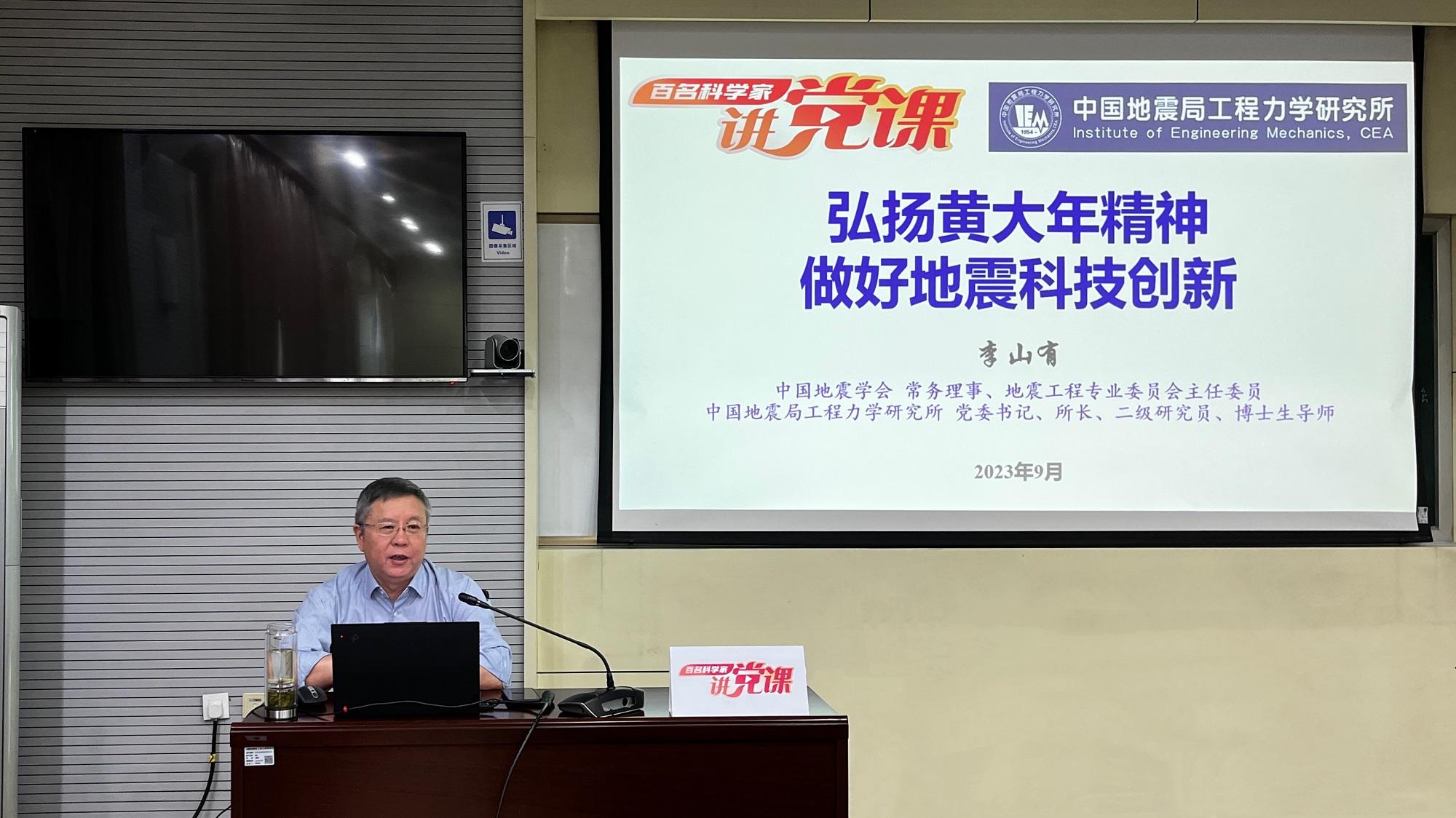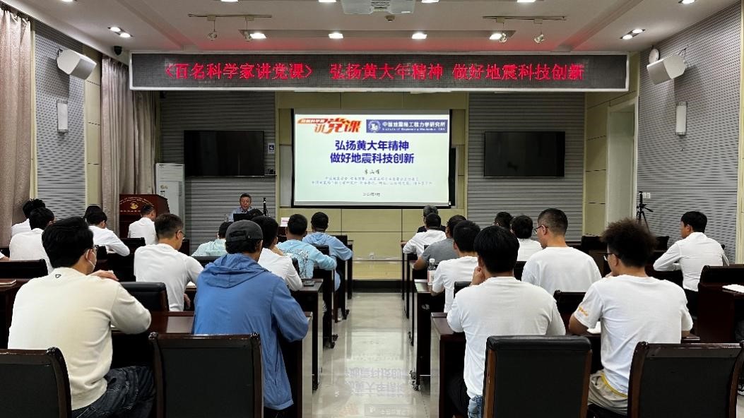 發(fā)布時間: 2023-09-15 點擊數(shù)量:7681為有效發(fā)揮中國科協(xié)黨校全國學(xué)會分校政治引領(lǐng)“主陣地”、黨性錘煉“大熔爐”作用,中國科協(xié)科技社團黨委組織開展了“百名科學(xué)家講黨課”活動。受中國地震學(xué)會邀請,9月14日,中國地震學(xué)會常務(wù)理事、地震工程專業(yè)委員會主任委員,我所黨委書記、所長李山有同志以《弘揚黃大年精神 做好地震科技創(chuàng)新》為題為所辦計財黨支部、工程地震研究中心黨支部及碩士研究生第二黨支部講授專題黨課。