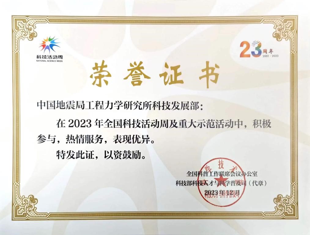 我所在2023年全國(guó)科技活動(dòng)周工作中受表彰