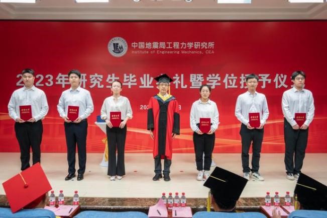 發布時間: 2023-06-30 點擊數量:52746月28日下午,中國地震局工程力學研究所2023年畢業典禮暨學位授予儀式在主樓四樓會議室隆重舉行。所學位評定委員會主任孫柏濤,黨委書記、所長李山有,黨委副書記張孟平,紀委書記孔繁鈺,副所長張令心、溫瑞智出席學位授予儀式。溫瑞智主持儀式。