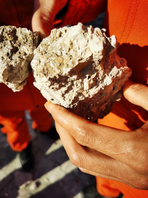 本次在安塔基亞市區搜救工作中,遇到一棟地震中完全倒塌的6層鋼筋混凝土公寓,形成層疊式廢墟。該建筑梁柱鋼筋還算充足,但是縱筋采用光圓鋼筋,連接處采用搭接連接,握裹力不足,不符合抗震設計要求。同時混凝土石子發黃、發脆,造成混凝土強度不高,容易發生脆性破壞。