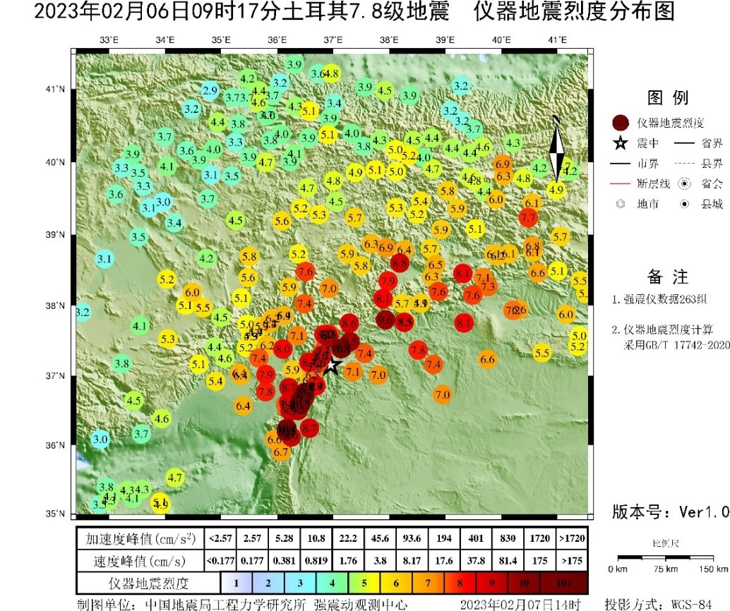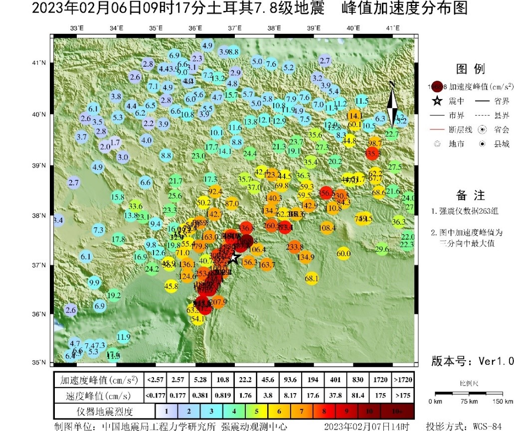 應(yīng)急產(chǎn)出:土耳其7.8級地震強震動觀測簡報(第1報)