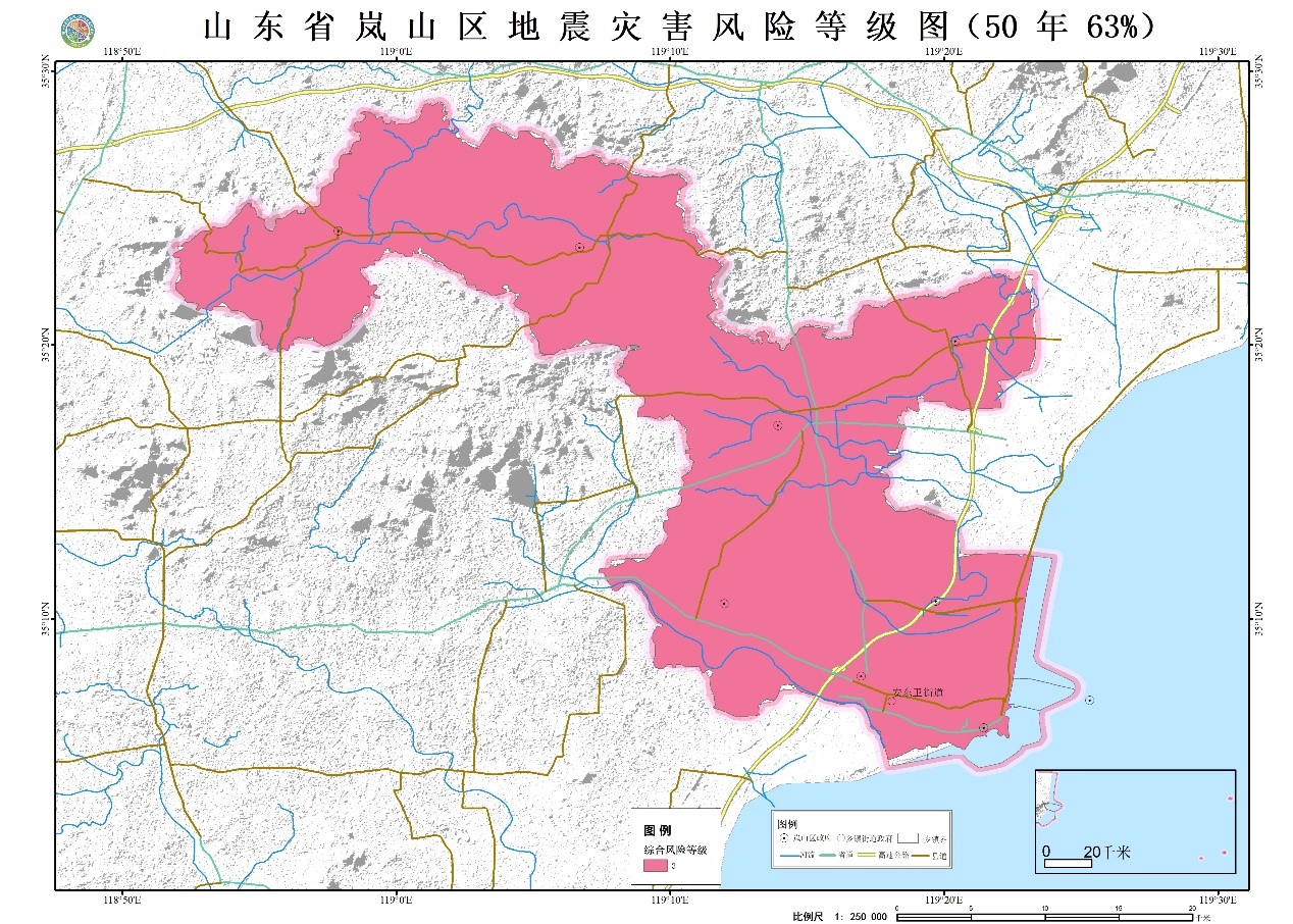 圖3 山東省日照市嵐山區(qū)地震災(zāi)害風(fēng)險(xiǎn)等級圖(50年超越概率63%)