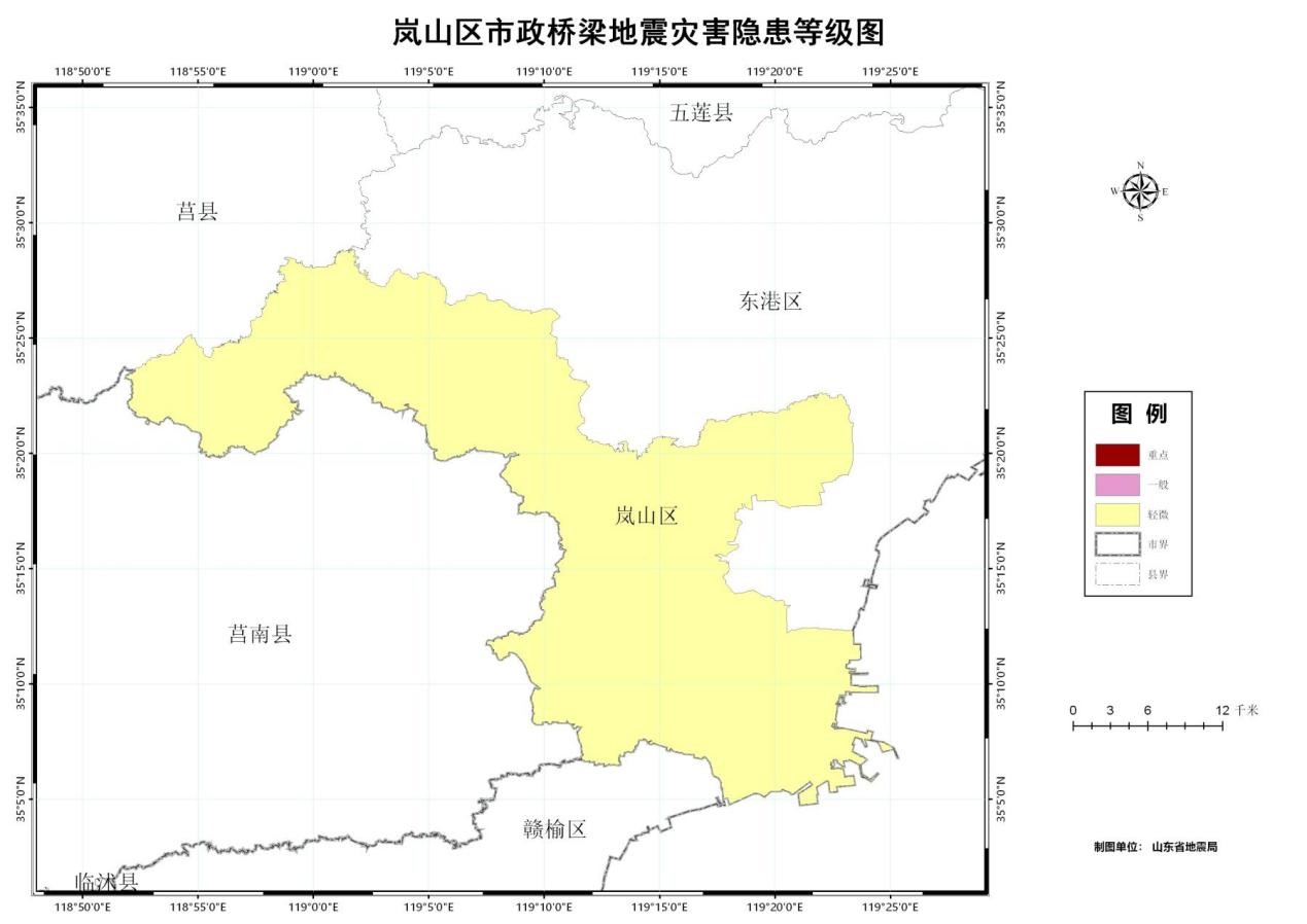 圖5 山東省日照市嵐山區(qū)市政橋梁地震災(zāi)害等級圖