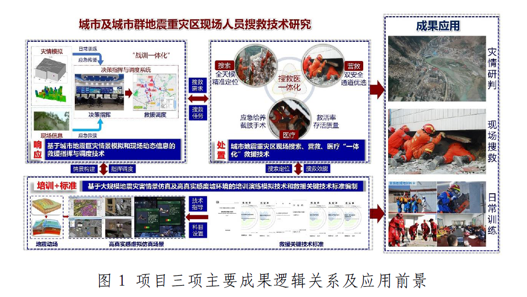 項目針對地震重災區現場壓埋人員搜索、營救、醫療三大救援環節關鍵難題進行技術攻關,形成了地震重災區現場搜索營救醫療一體化救援技術,創新性地提出了一套多尺度廢墟埋壓人員精準定位,以及倒塌建筑廢墟救援生命通道快速構建與優選技術,實現了“搜、救、醫”一體化的搜救效能評估,整體達到國際先進水平,成果將顯著提高壓埋人員救活率和存活質量。