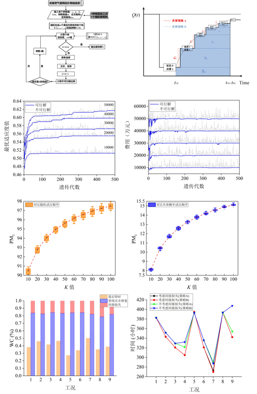 (3)將城市燃?xì)夤芫W(wǎng)的抗震、救災(zāi)過程分為三個階段,基于不同的計算機(jī)優(yōu)化方法對各階段的抗震韌性進(jìn)行提高。第一階段在有限的政府資金預(yù)算下,利用自適應(yīng)比例與直接比較-遺傳算法(FPDC-GA)得到震前最優(yōu)加固或更換管道的方案,以最大化燃?xì)夤芫W(wǎng)的抗震魯棒性。第二階段根據(jù)震后中斷供氣的用戶端節(jié)點(diǎn)分布情況,采用多標(biāo)簽K近鄰算法(ML-KNN)預(yù)測震后泄漏管道,計算震后優(yōu)化的管道試壓順序,以達(dá)到高效率排查失效管道從而快速進(jìn)入修復(fù)階段的目的。第三階段基于貪心策略提出一種震后管道修復(fù)順序優(yōu)化方法,以提升燃?xì)夤芫W(wǎng)功能恢復(fù)的效率。將這三階段提升方法應(yīng)用于中國華北某城市燃?xì)夤芫W(wǎng)抗震韌性提升工作中,驗(yàn)證了所提方法的可行性。相關(guān)技術(shù)細(xì)節(jié)可查閱發(fā)表在《Soil Dynamic and Earthquake Engineering》上的論文。